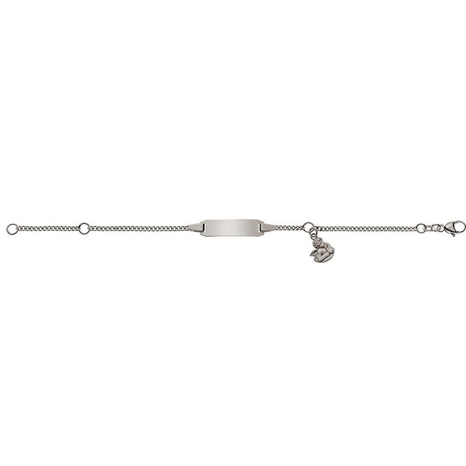 MUAU SchmuckBébé Bracelet Panzer Weissgold 750, 14cm Gravurplatte 2cm Engel Anhänger