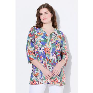Ulla PopkenBlusa Misto Lino Taglio Svasato Scollo a Tunica Maniche 3/4 Floreale