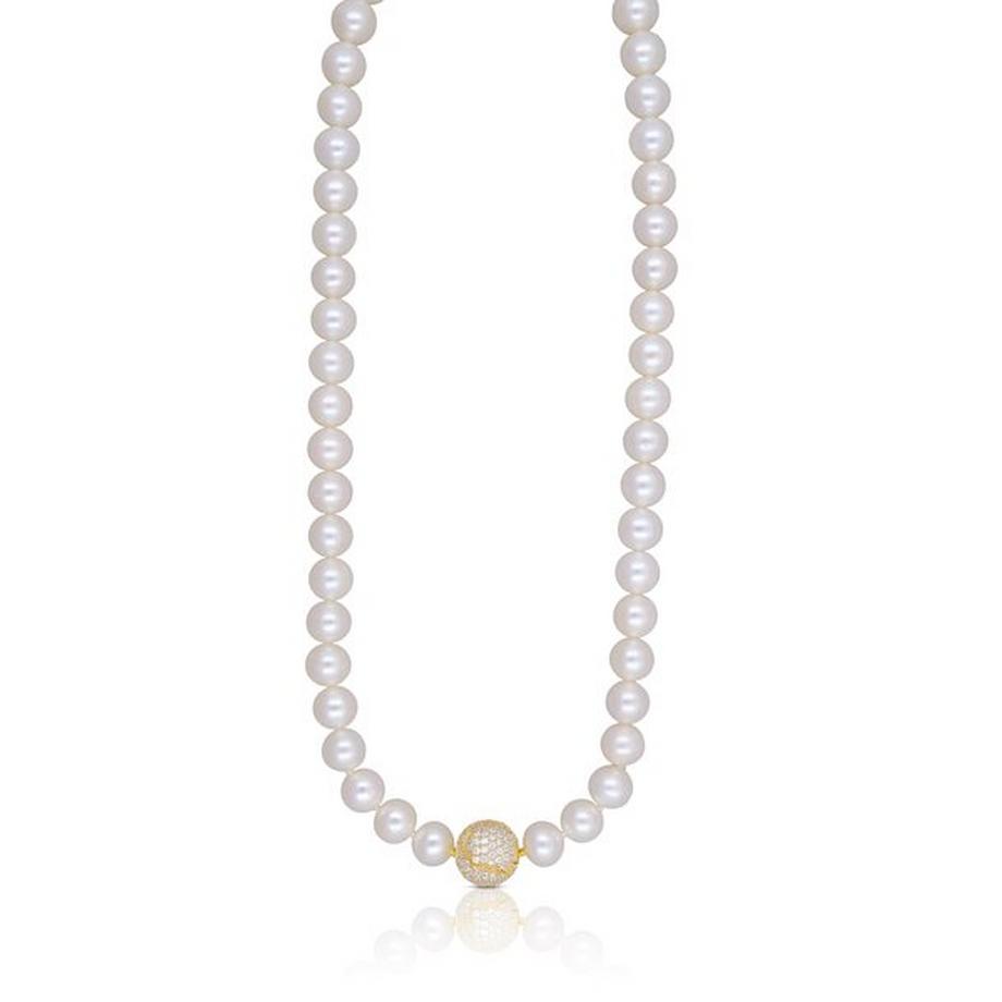 MUAU SchmuckCollier Silber 925 Süsswasserperle 8-9mm Zirkonia