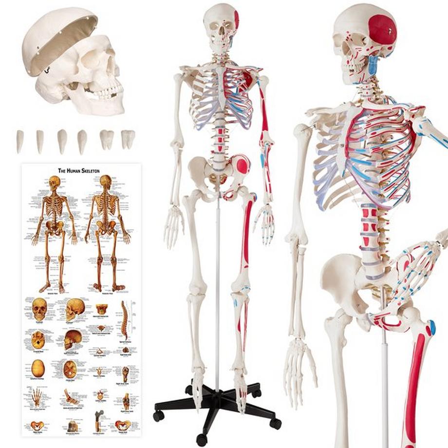 TectakeModello anatomico dello scheletro umano con muscoli ed ossa indicati