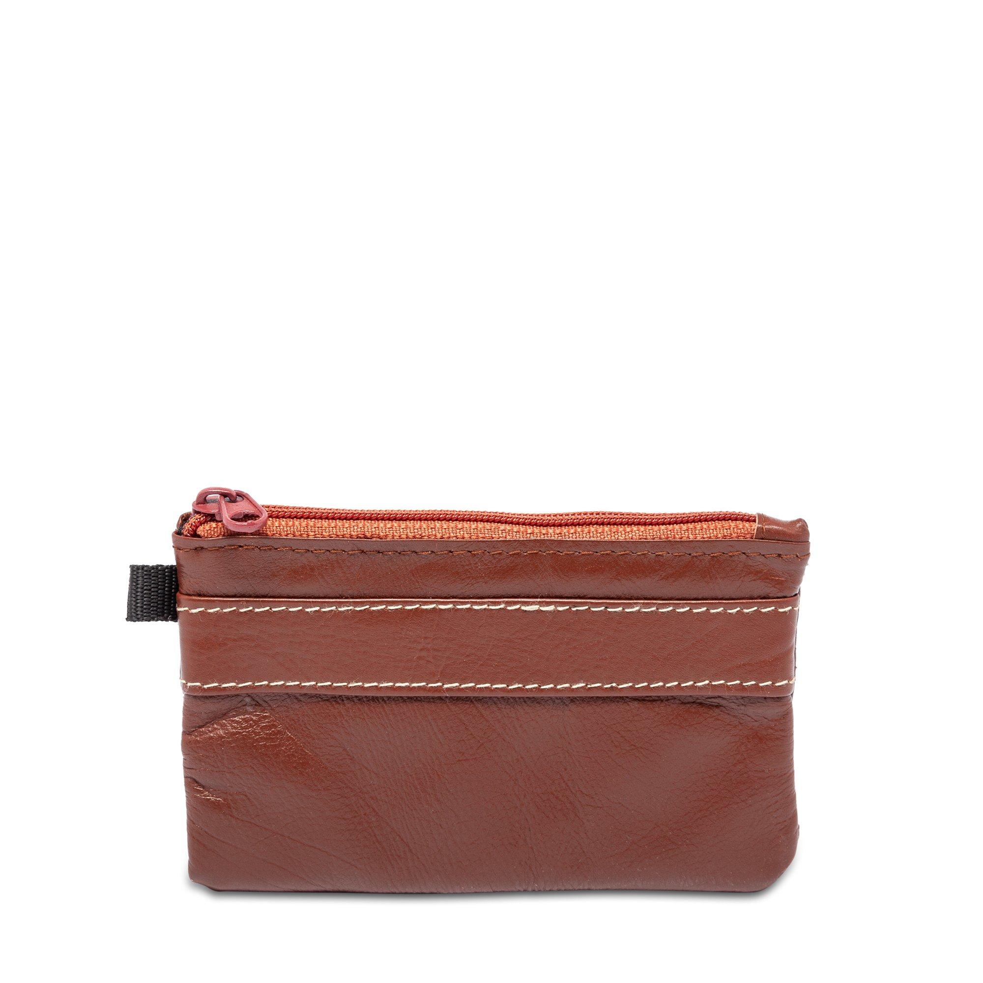 Questo pratico portamonete in pelle è dotato di un portachiavi integrato e di un piccolo scomparto laterale.