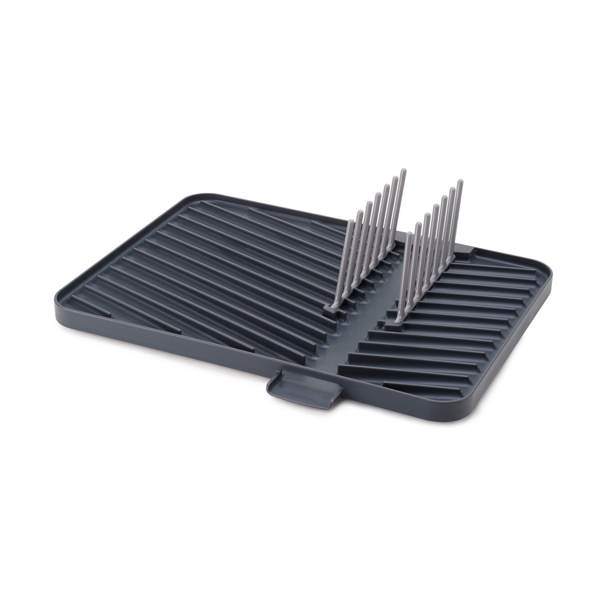 Il portapiatti pieghevole di Joseph Joseph può contenere fino a 6 piatti grandi. Si blocca in posizione ed è quindi stabile. Il lavandino conduce l'acqua di scarico direttamente nel lavandino. Il vassoio antigoccia ha piedini antiscivolo ed è facile da riporre.