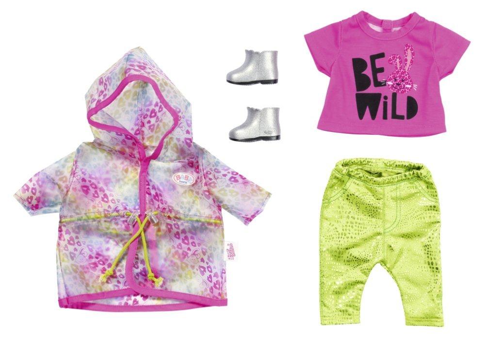 Il set arcobaleno comprende una giacca con cappuccio, pantaloni e camicetta dai colori vivaci e stivali coordinati. Abbigliamento da pioggia per chi ama il brutto tempo. Accessori di alta qualità per la bambola BABY born di 43 cm.