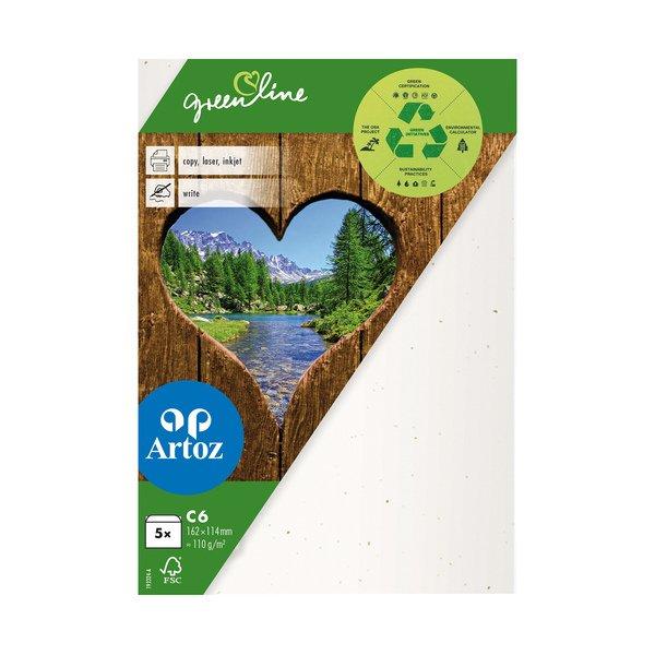 Set di 5 buste Greenline di Artoz in carta di alta qualità. La linea è sinonimo di vicinanza alla natura e sostenibilità.