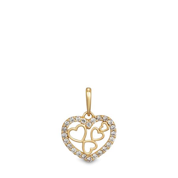 Elegante ciondolo a forma di cuore in oro 18 carati del marchio L'Atelier by Manor decorato con pietre di zirconia brillanti.