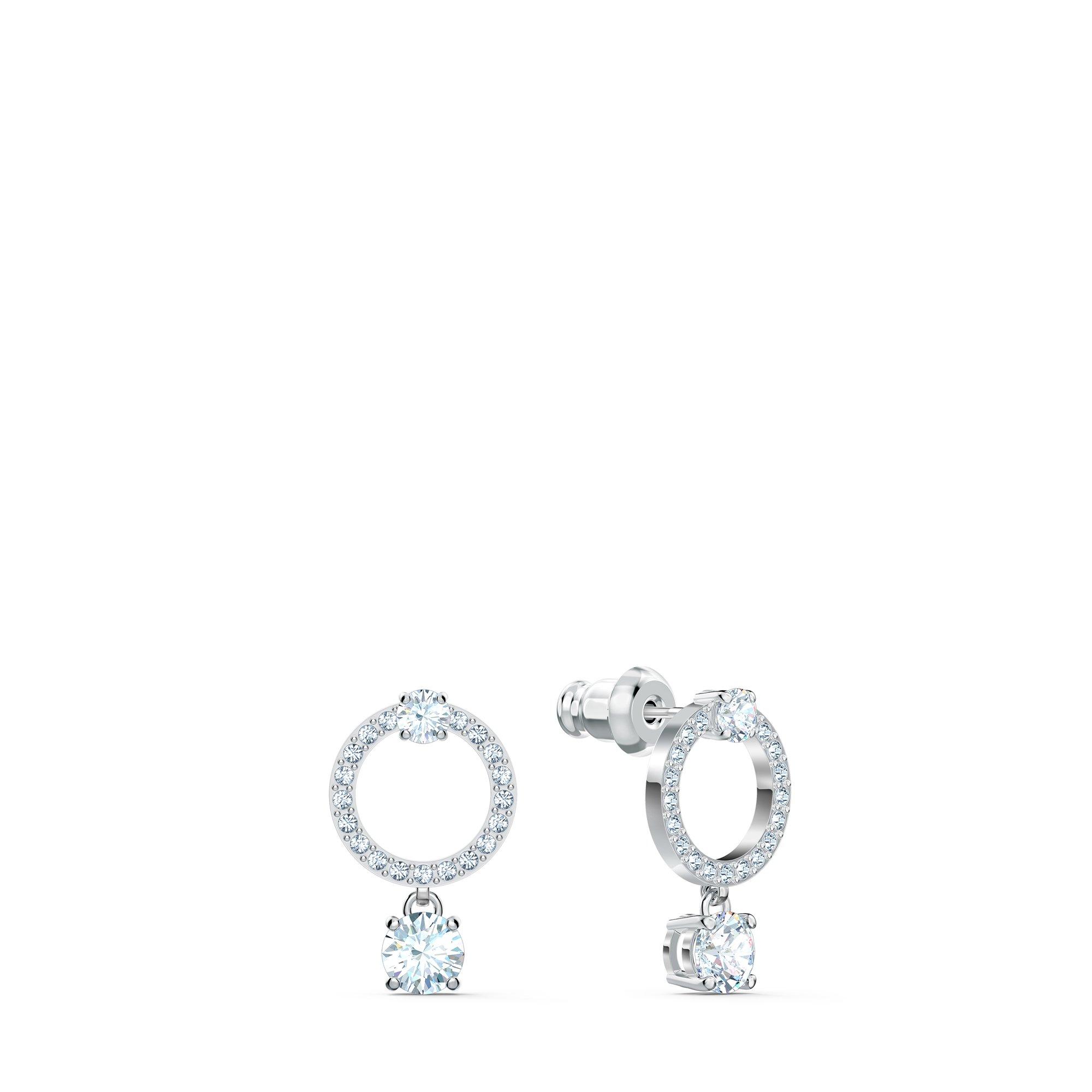Questo paio di orecchini a buco Swarovski è semplice ma sempre brillante. Una pietra bianca rotonda ricade da un piccolo cerchio, splendidamente decorato con scintillante pavé. Gli elementi pendenti danzano ad ogni movimento del tuo capo, riflettendo la luce in modi sempre nuovi e assolutamente brillanti. Questi accattivanti orecchini aggiungono un tocco di inimitabile scintillio agli outfit da tutti i giorni.