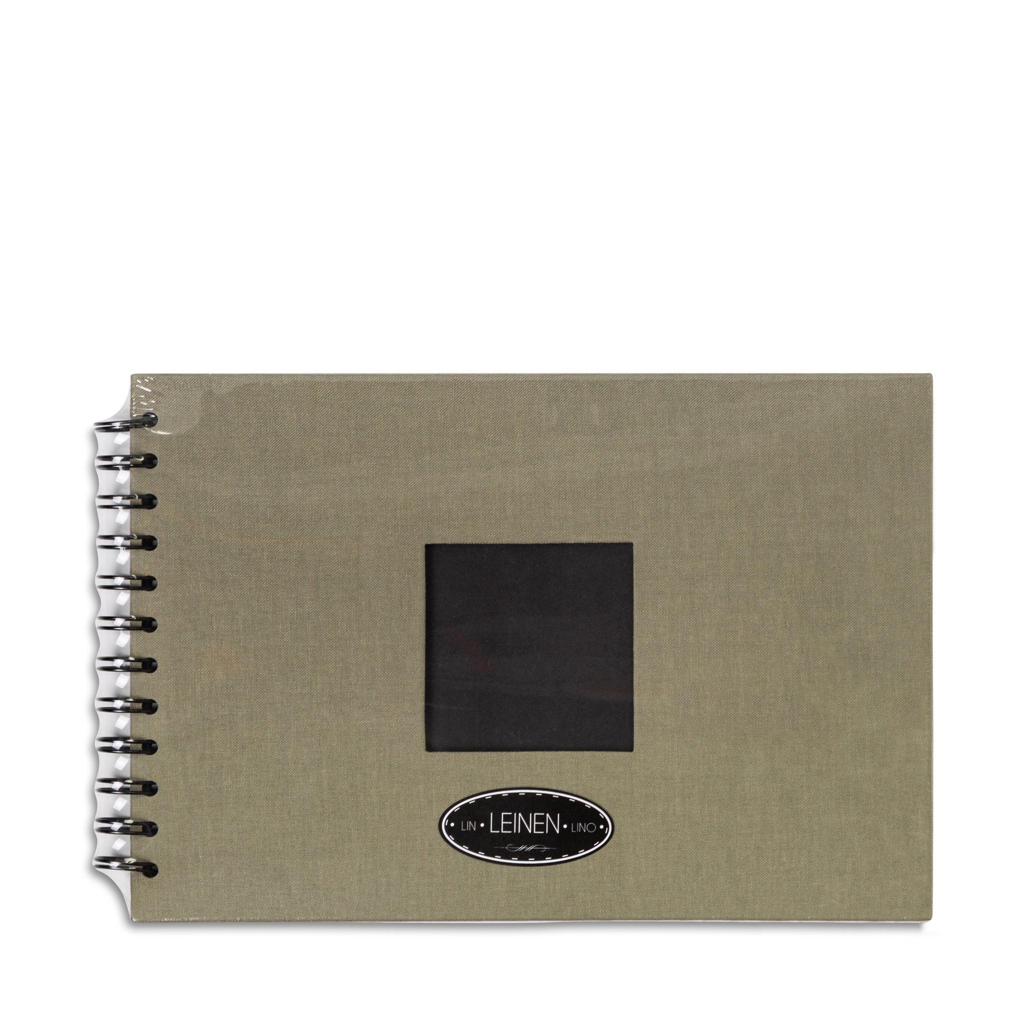 Libro creativo con copertina in lino, finestra. L'album fotografico a spirale con copertina in lino - contenuto 50 pagine di cartoncino fotografico nero da 210 gm² e punzonatura a finestra - è adatto non solo per le foto, ma anche per eventuali collage, appunti e ricette. Lasciate libera la vostra creatività. Gli album sono disponibili in diversi colori e formati.