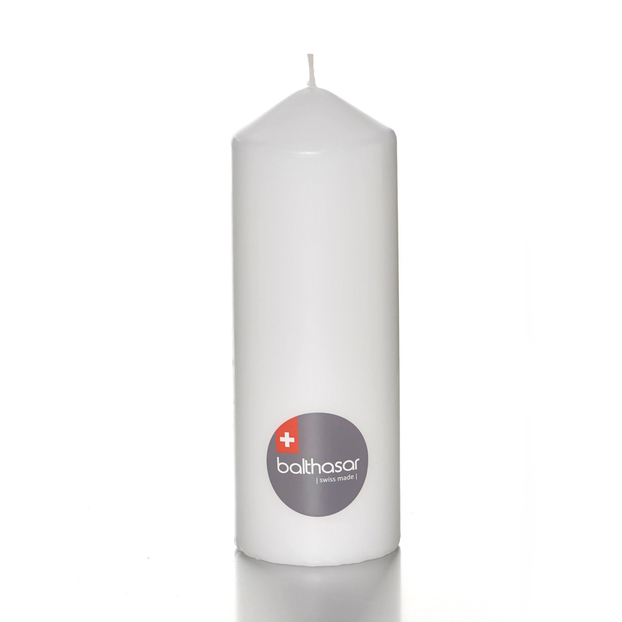 Abbinabile a qualsiasi colore. Il bianco è sempre perfetto. Questa candela firmata Balthasar è ideale per uso interno e offre una superficie liscia. Realizzata in Svizzera in cera, ha un tempo di combustione di 90 ore e dimensioni di 7 x 20 cm.