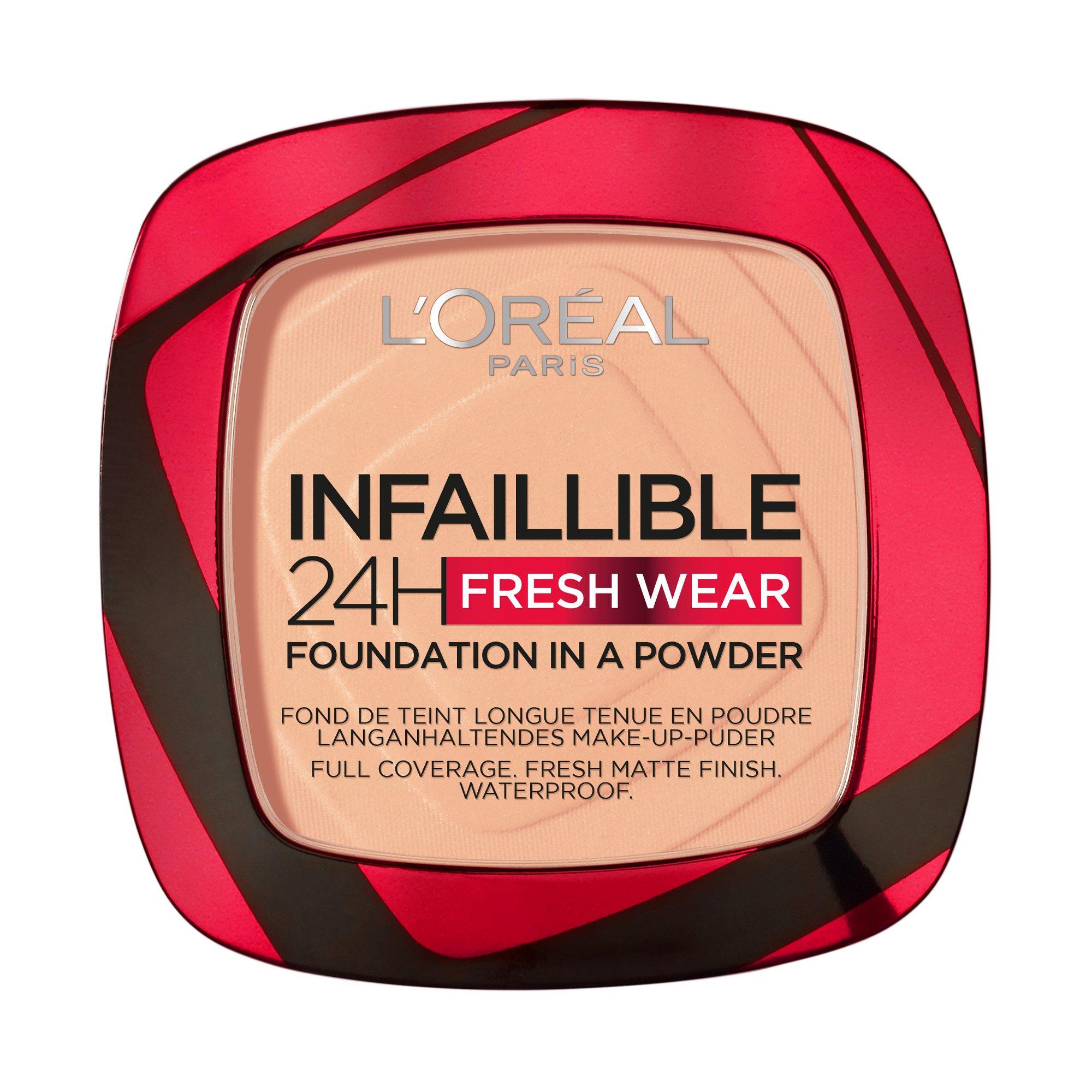 La cipria L'Oréal Paris Infaillible 24H Fresh Wear combina la copertura e la tenuta del trucco con l'effetto opaco della cipria. I pigmenti a lunga durata forniscono un'elevata copertura, senza alcun trasferimento. La formula leggera dona all'incarnato un'affidabile finitura opaca. La texture in polvere offre un piacevole comfort senza lasciare la pelle secca. La formula traspirante dura fino a 24 ore, è resistente all'acqua e al sudore e resiste anche in condizioni di elevata umidità. Oltre al trucco, alla base e al correttore, il trucco in polvere completa la gamma Infaillible ad alte prestazioni di L'Oréal Paris. Niente ostacola il trucco a lunga durata.