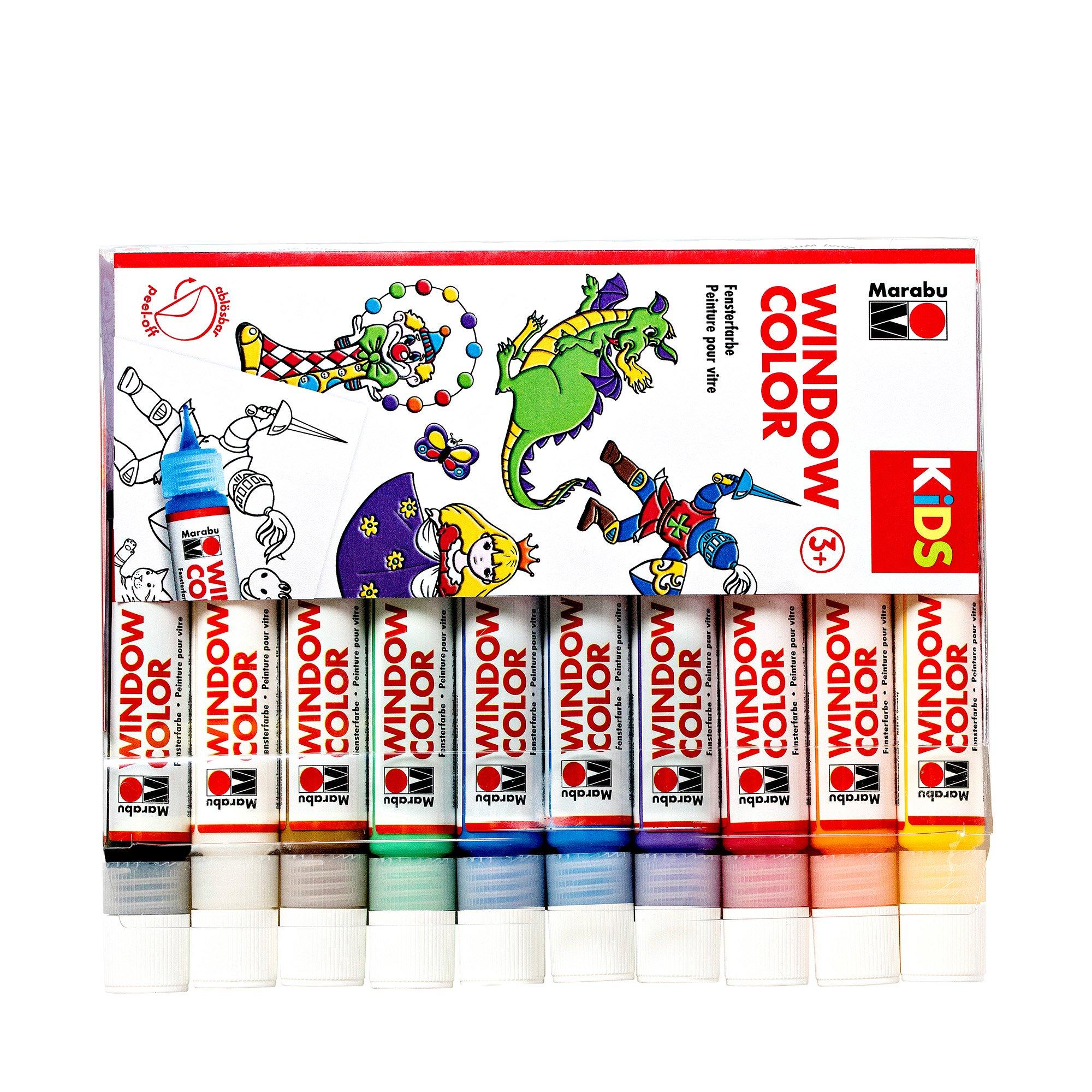 Il KiDS Window Color brillante, trasparente e luminoso è una pittura per finestre a base d'acqua rimovibile e può essere utilizzato su superfici lisce come vetro, specchi, piastrelle o pellicola.• Set 6 x 35 ml • 1 x A4 pagina da colorare con 18 motivi