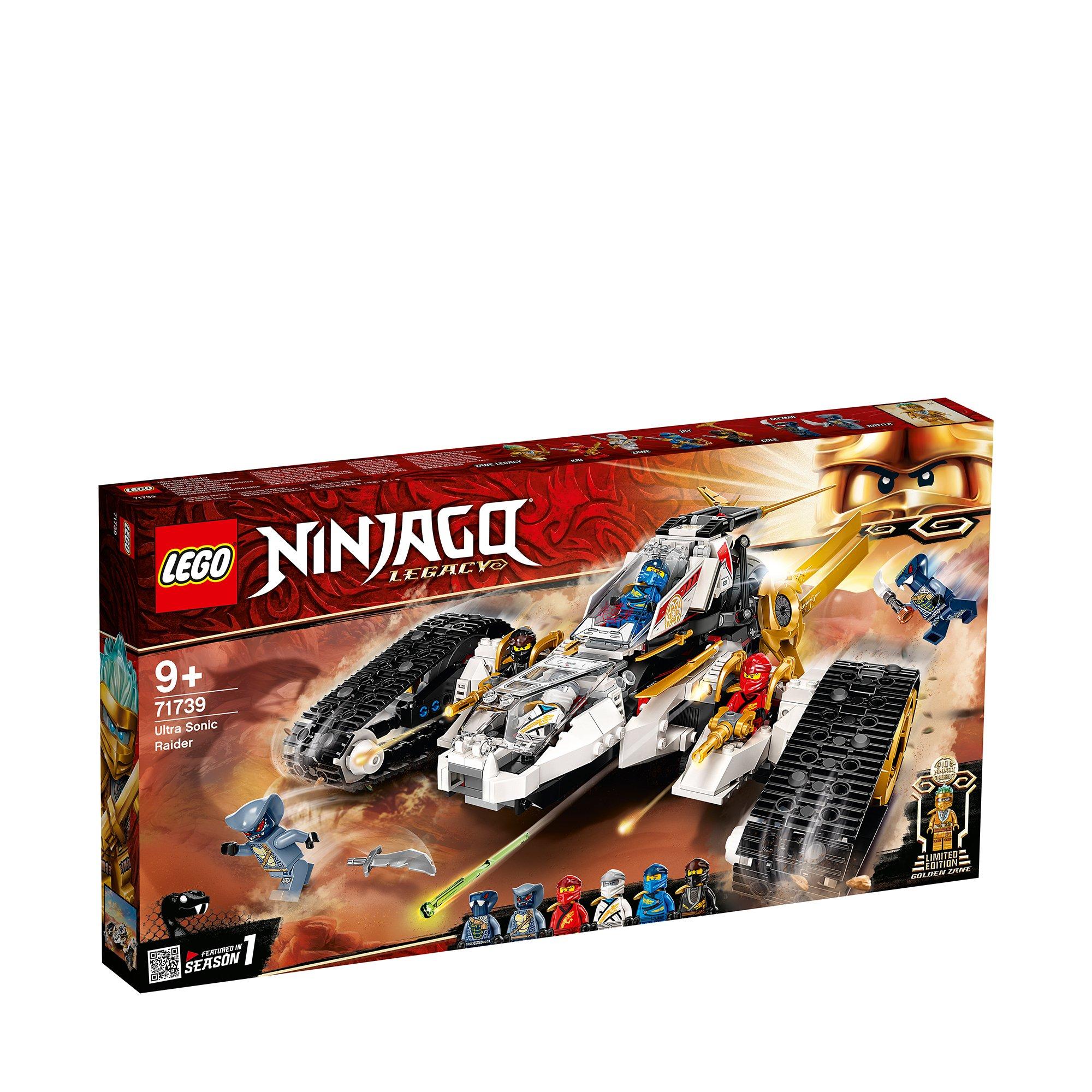 I bambini possono inscenare le incredibili avventure della stagione 1 della serie TV LEGO® NINJAGO® con questo aggiornamento moderno del Raider Ultra Sonico (71739). Il veicolo 4-in-1 può essere smontato per creare una motocicletta giocattolo separata, un jet con shooter a molla e 2 veicoli fuoristrada.Giocattoli che permettono ai bambini di soddisfare la loro passione per i giochi di ruolo ninjaQuesto playset unico include 7 minifigure: i ninja Kai, Zane, Cole e Jay, oltre ai guerrieri serpente Mezmo e Rattla della tribù Hypnobrai, fornendo ai bambini tutto il necessario per inscenare avvincenti battaglie. Novità di giugno 2021: una minifigure speciale da collezione, mai realizzata prima di Zane Legacy d’oro, con supporto per celebrare i 10 anni dei giocattoli NINJAGO.Fantastici set LEGO per il gioco creativoI playset LEGO NINJAGO trasportano i bambini in un mondo ricco di divertenti avventure, dove possono unirsi ai loro coraggiosi eroi per affrontare le forze del male, giocando con una collezione straordinaria di giocattoli fantastici, come i draghi, i mech e molto altro ancora.