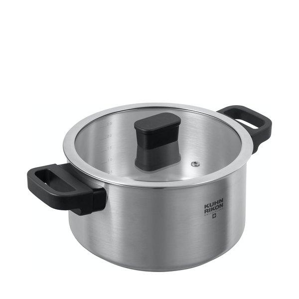 Il design lineare della pentola Locarno si adatta particolarmente bene alle cucine semplici ed eleganti. È fabbricato nel sito di produzione svizzero e, grazie all'alta qualità, è molto resistente.