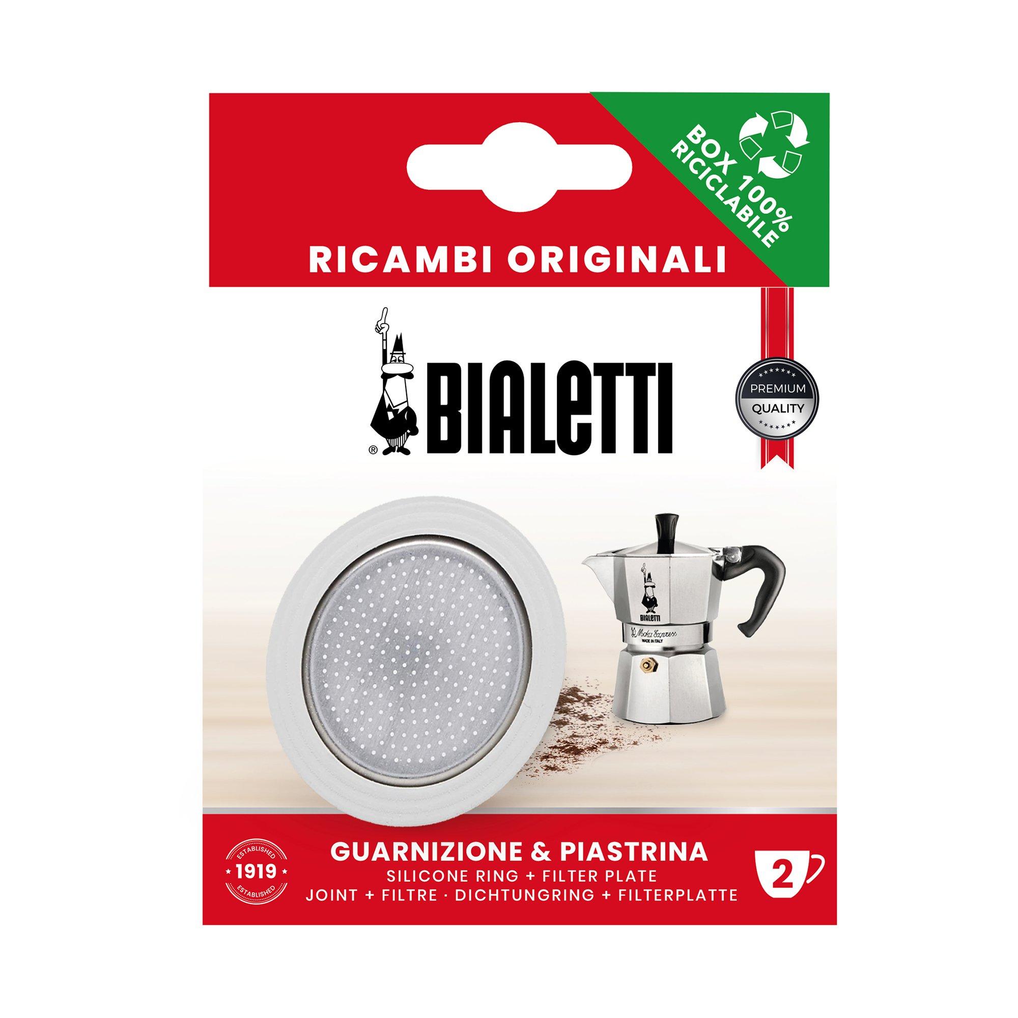Set 2 pezzi Bialetti: filtro e guarnizione New Moka (2 tazze, cromato, 57mm).