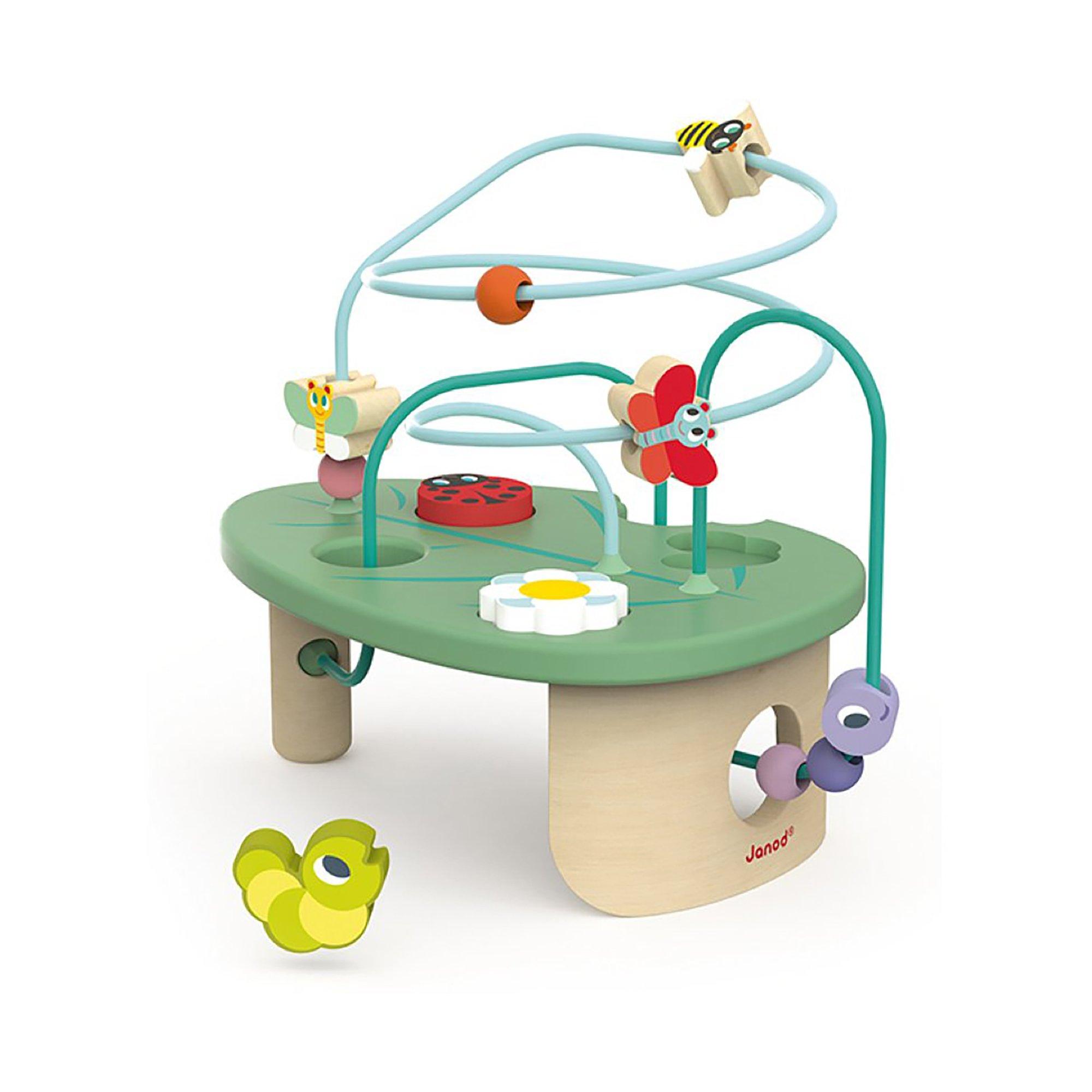Giocattoli motorizzati in legno. Modello di prato. Con 2 anelli motore e 3 forme. Questo grazioso ciclo di attività motorie aiuterà il tuo bambino a sviluppare la concentrazione e le abilità motorie in modo divertente. Oltre al suo design a molla a forma di foglia, presenta due fili con perline a forma di farfalle, un bruco e un'ape da spingere. Ha anche tre pezzi di puzzle a pioli (fiore, bruco, coccinella) per sviluppare destrezza e abilità. Adatto a bambini da 12 a 36 mesi. Dimensioni 24,3 x 15 x 19,5 cm.