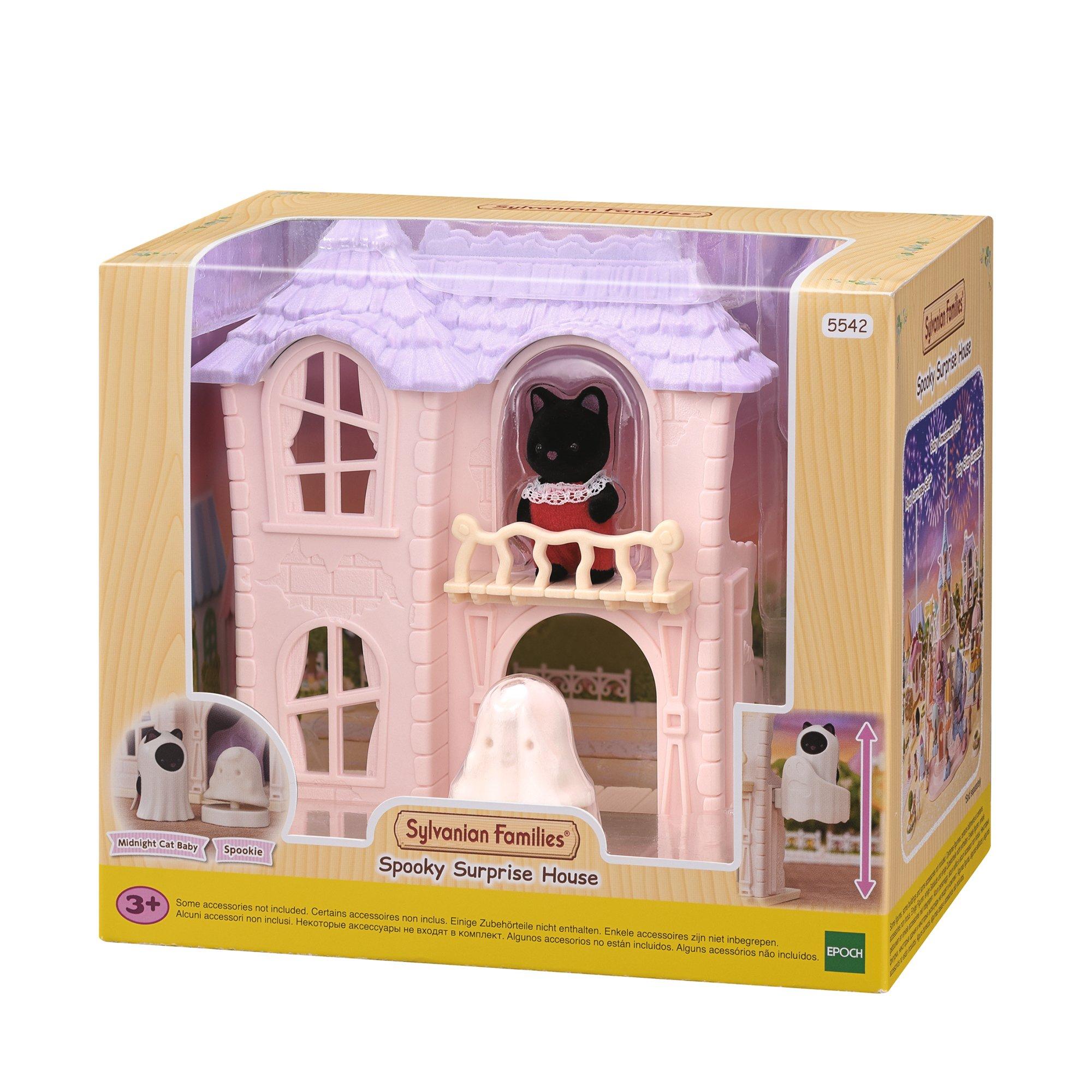 Il cucciolo di gatto mago indossa il suo costume da fantasma e vi invita nella sua casa stregata. Ama sedersi sulla poltrona e guardare i film di fantasmi in TV con il pipistrello. Avete il coraggio di sedervi? Quando ha paura, prende l'ascensore e sale al piano superiore o esce sul balcone. Contiene il gatto mago bambino. Vieni a giocare con noi! Sylvanian Families - ricordi per la vita.