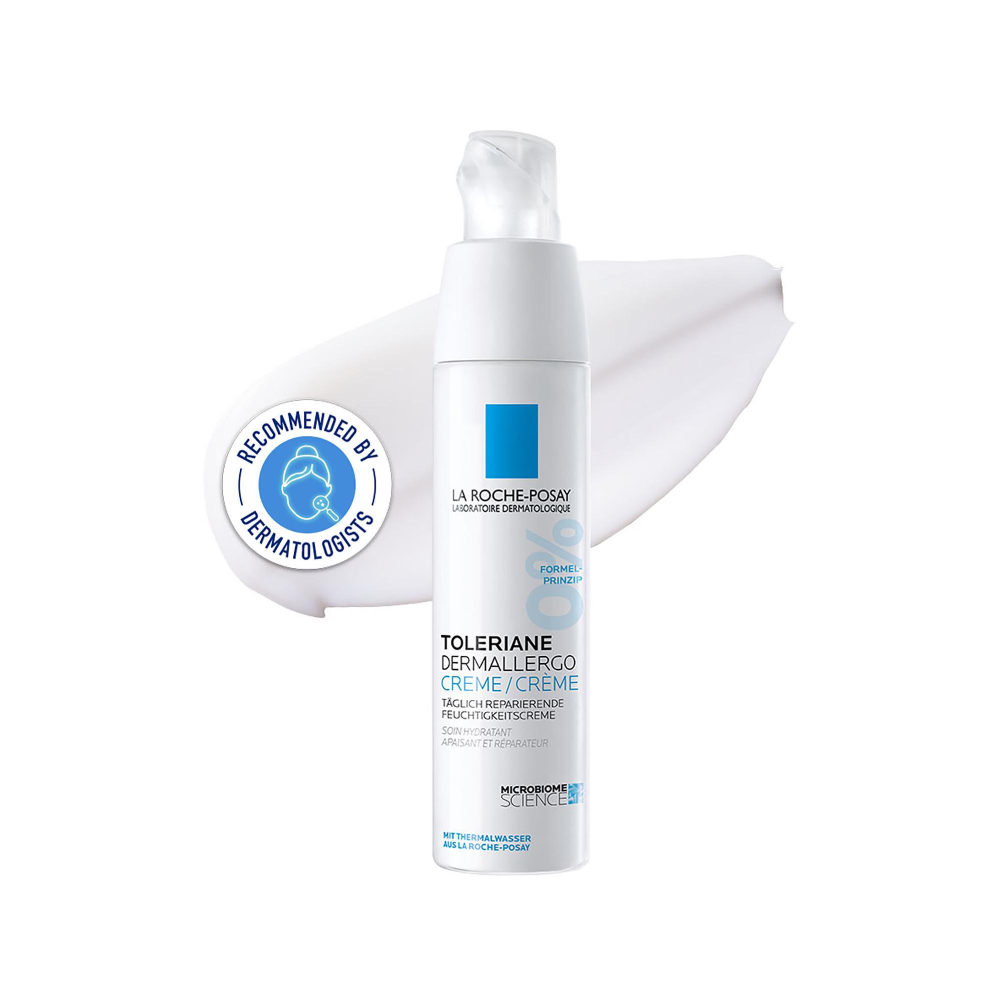 TOLERIANE DERMALLERGO CREME di La Roche-Posay è una crema idratante quotidiana riparatrice e lenitiva che allevia i sintomi della pelle ipersensibile e allergica e sostiene le funzioni del microbioma. Il prodotto è arricchito con acqua termale lenitiva di La Roche-Posay e con Neurosensine e Sphingobioma. 0% di alcol, 0% di profumo. Effetto anti-recidiva. Per pelli da normali a secche.