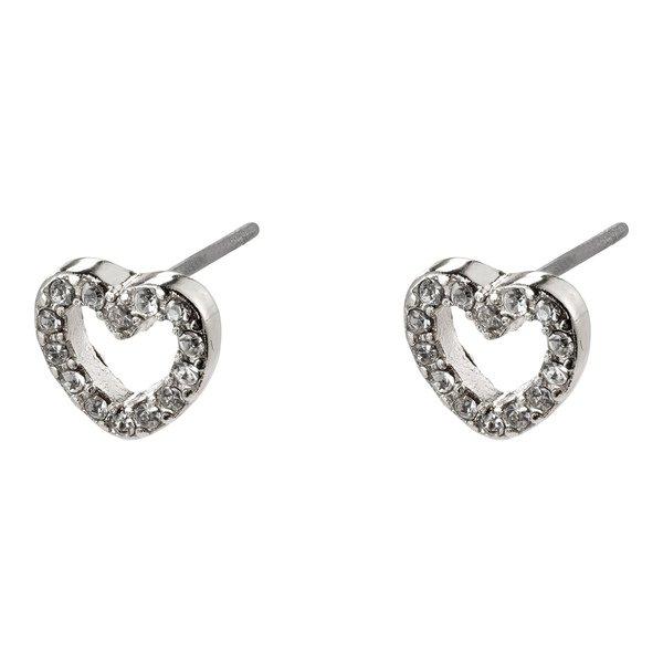 Orecchini placcati in argento a forma di cuore delicato. I lati del cuore sono lucidati e la parte anteriore è decorata con cristalli scintillanti. Il simbolo dell'amore è qui riprodotto in un bellissimo design che cattura la luce. Un classico bello e femminile con una nota di glamour. Un richiamo visivo sobrio e poetico che riflette una personalità romantica e graziosa.