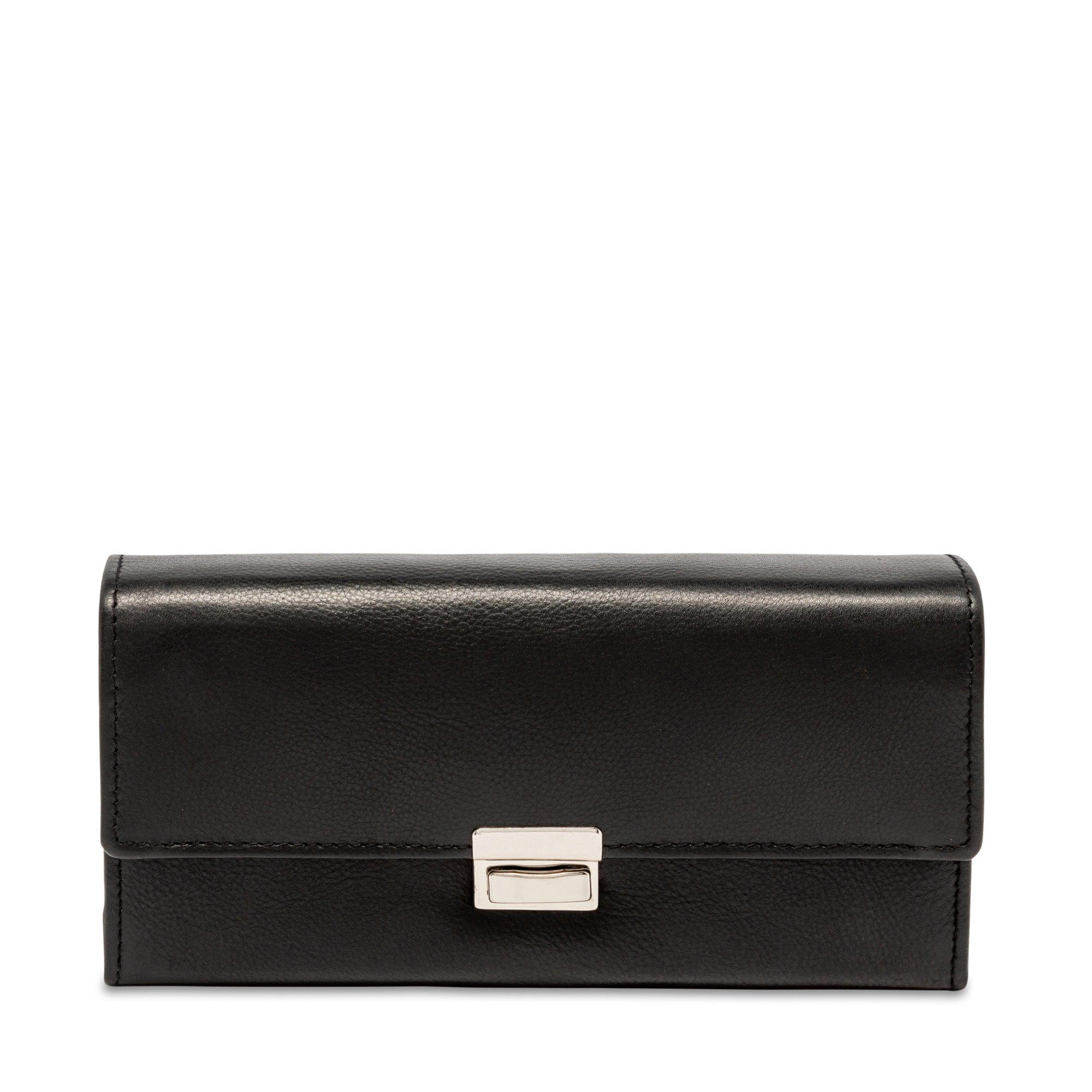 Questo classico portafoglio è realizzato in vera pelle, con chiusura a fibbia ad ardiglione variabile, numerosi scomparti aperti, un portachiavi e uno scomparto interno separato con cerniera. Sul retro è presente anche un pratico scomparto aggiuntivo aperto per riporre temporaneamente banconote o appunti.