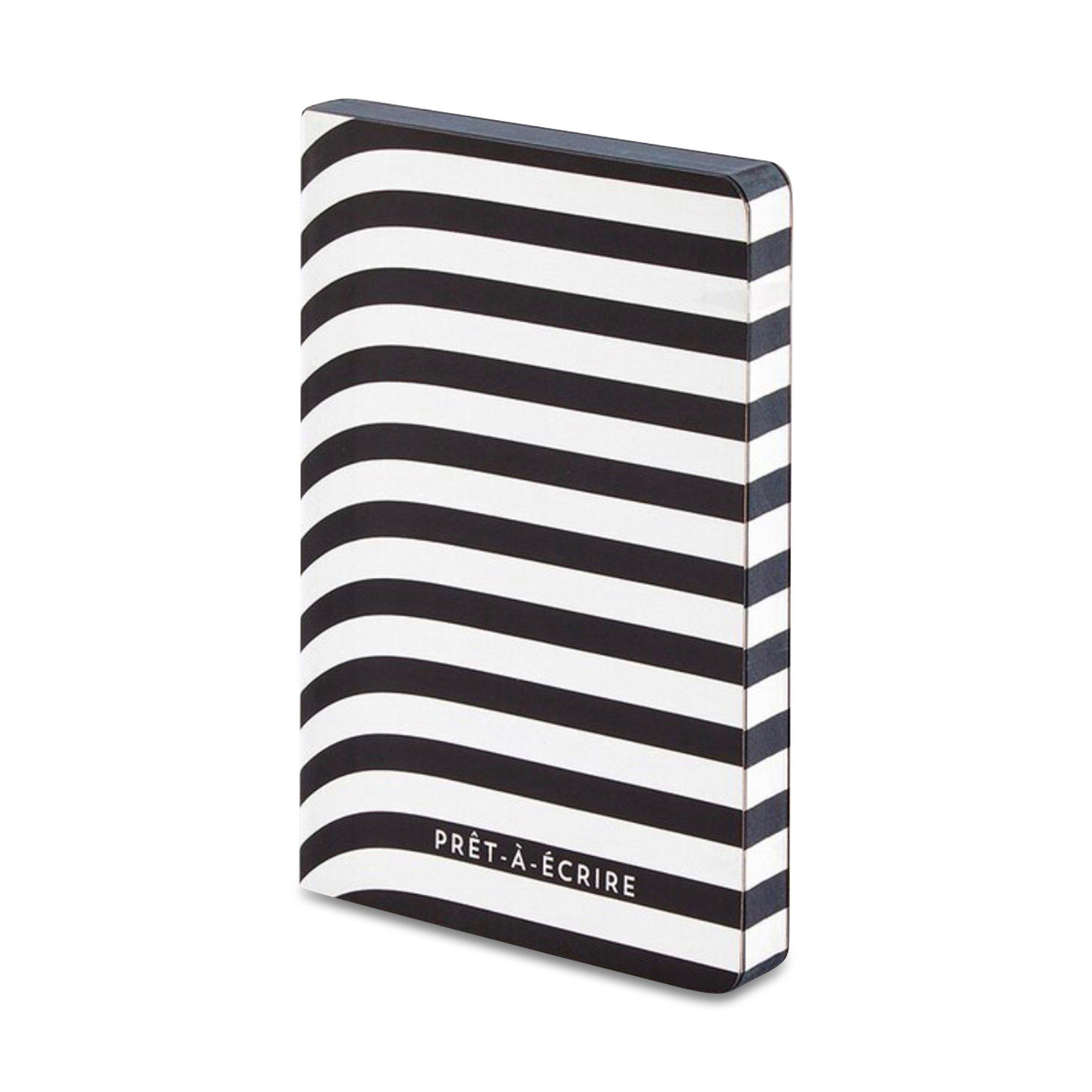 """Prêt-à-porter"" significa ""pronto per l'uso"". ""Prêt-à-écrire"", invece, ""pronto per scrivere"". Questo taccuino a righe bianche e nere è vero in entrambi i casi. Un accessorio da mostrare, elegante per pensieri e disegni. 176 pagine Cuciture a filo Oggetto in morbida pelle riciclata Griglia 2,5 mm Mini griglia a punti 15 x 10,8 x 1,5 cm "