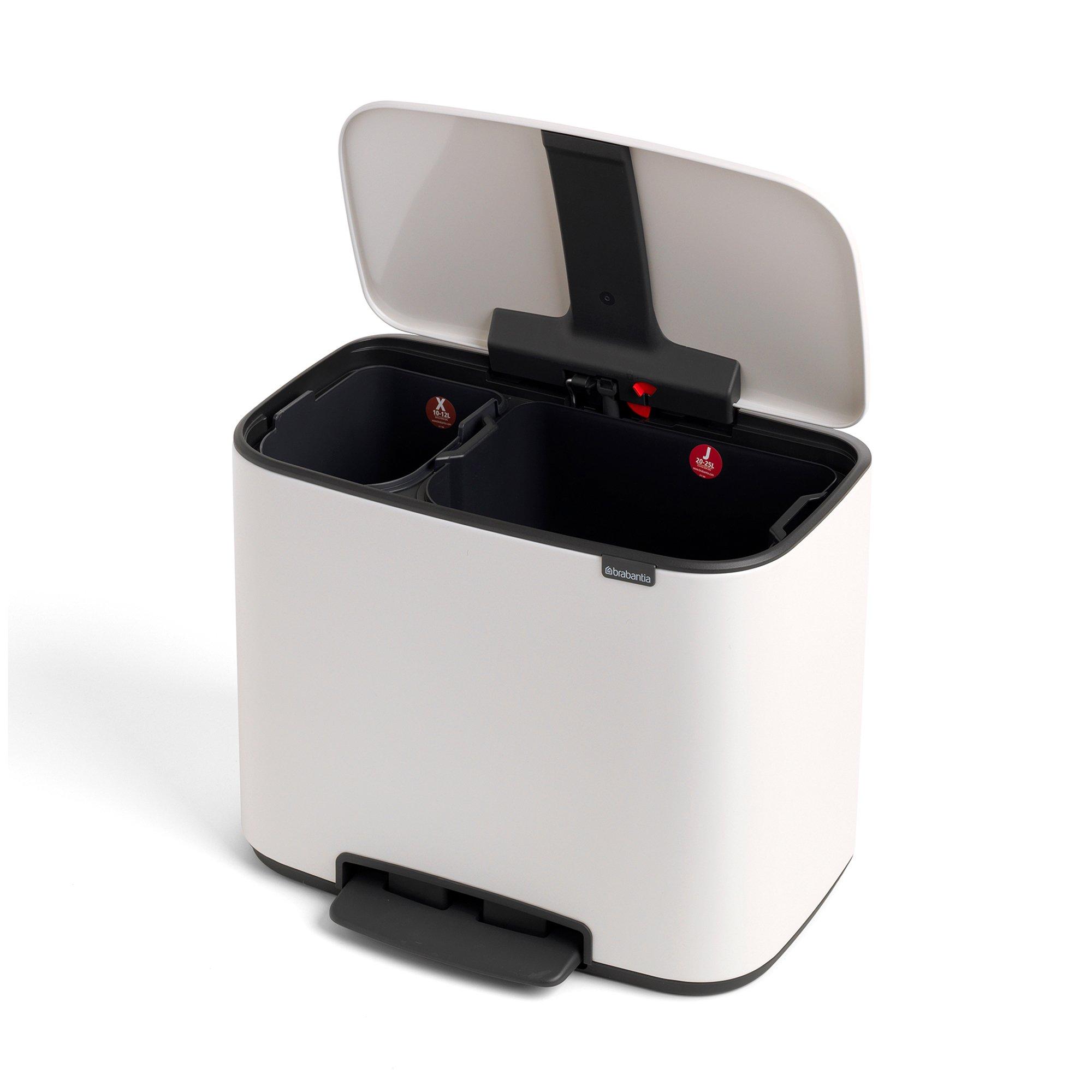 Questa pattumiera a pedale di Brabantia ha tutto: l'interno è diviso in due secchi interni di diverse dimensioni (11 + 23 litri). I secchi sono realizzati in plastica, possono essere facilmente rimossi e quindi anche facilmente puliti. Produzione sostenibile. Coperchio a chiusura morbida tramite pedale.