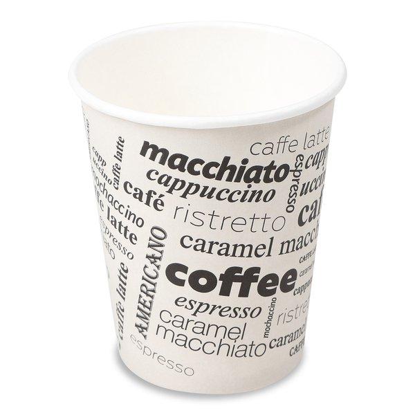 Praktische Kaffee-Becher im 20er-Pack im Coffee-To-Go-Stil mit Print-Schriftzügen und zwei Deziliter Fassungsvolumen.