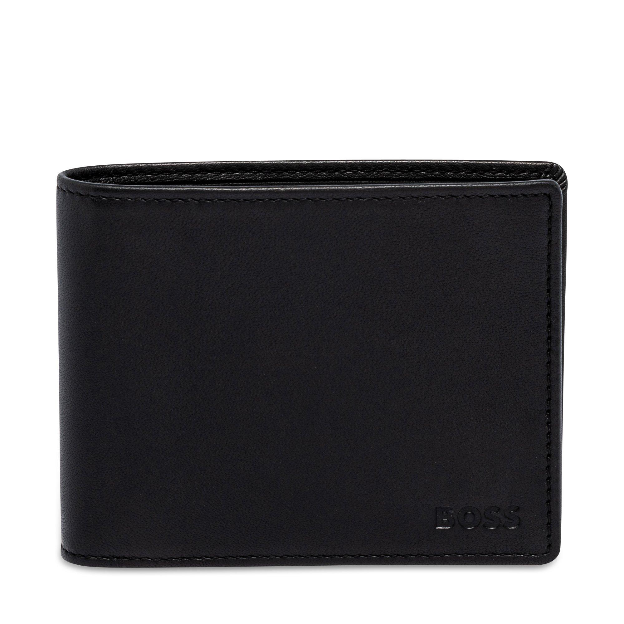 Questo classico portafoglio pieghevole firmato BOSS è realizzato in pelle liscia e sfoggia molte caratteristiche pratiche, come lo scomparto per le monete con chiusura a scatto o il sistema di sicurezza RFID, che protegge dal furto di dati. Il semplice logo in rilievo sul davanti completa il look puristico.