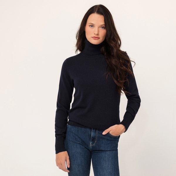Questo classico maglione dolcevita di alta qualità è realizzato in cashmere biologico. Presenta un dolcevita e bordi a coste sul fondo, offrendo una sensazione particolarmente piacevole sulla pelle e donando calore.