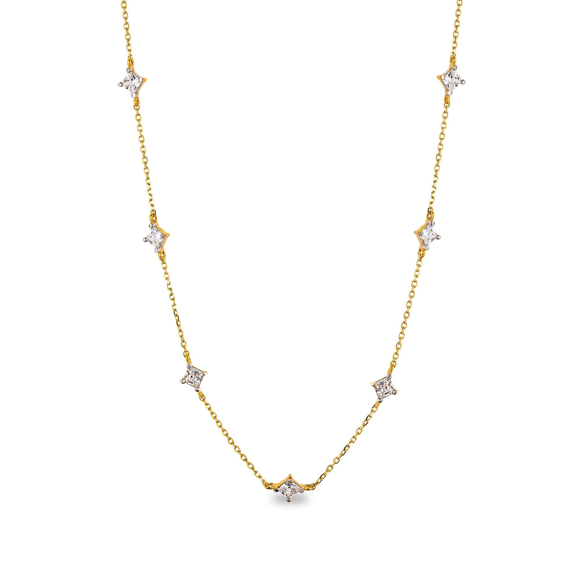 Catena straordinariamente delicata in oro puro con un motivo equilibrato di rombi in zirconi fini firmata Studio Marquise.