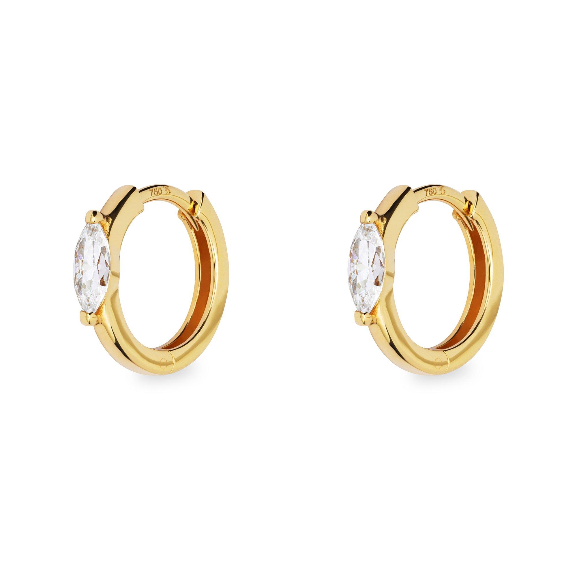 Questi delicati orecchini a cerchio firmati Studio Marquise realizzati in oro puro fanno brillare gli zirconi a rombi: una gemma dal massimo splendore.