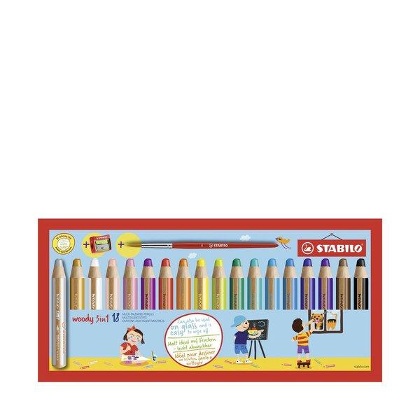 Matite colorate multitalento di STABILO. Le matite Woody 3in1 sono matite colorate, acquerelli e pastelli a cera in un unico accessorio. Le penne offrono un'elevata opacità e una grande intensità del colore, che assicura ottimi risultati su carta scura e immagini graffiate. Adatte anche per superfici lisce come vetro e metallo. Facilmente lavabili con acqua.
