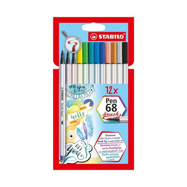 Penne in fibra Premium con punta a pennello flessibile, ideale per il lettering a pennello, fumetti, manga e artisti per hobby, pressione forte = linee spesse, pressione leggera = linee sottili. Inchiostro verde neutro, acquerellabile, i colori possono essere mescolati insieme (tecnica di miscelazione) e acquerellati. Disponibile in 19 colori, basati sulla tavolozza di colori standard delle penne a punta di fibra Pen 68. Codifica dei colori riconoscibile attraverso il tappo, le strisce del bordo circonferenziale e i tappi di chiusura. Il cappuccio ventilato può essere attaccato all'estremità della penna. Custodia con 12 colori, blu scuro, verde foglia, giallo, carminio, nero, blu turchese, viola, grigio chiaro, viola, blu oltremare, rosa chiaro, ocra scuro, certificato CE.