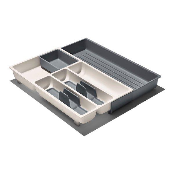 La fodera per cassetti espandibile aiuta a riordinare cassetti di qualsiasi dimensione. I cestini per utensili consentono di risparmiare spazio impilando gli utensili in modo ordinato e la sezione grande e indivisa è ideale per gli utensili da cucina di forma irregolare, come gli apriscatole. L'organizzatore comprende anche un vassoio rimovibile per gli utensili più piccoli e difficili da riporre, come i tappi di vino e i porta-cornetti. I piedini antiscivolo mantengono l'organizzatore in posizione quando si apre e si chiude il cassetto. Gli scomparti sono rimovibili per una pulizia accurata.