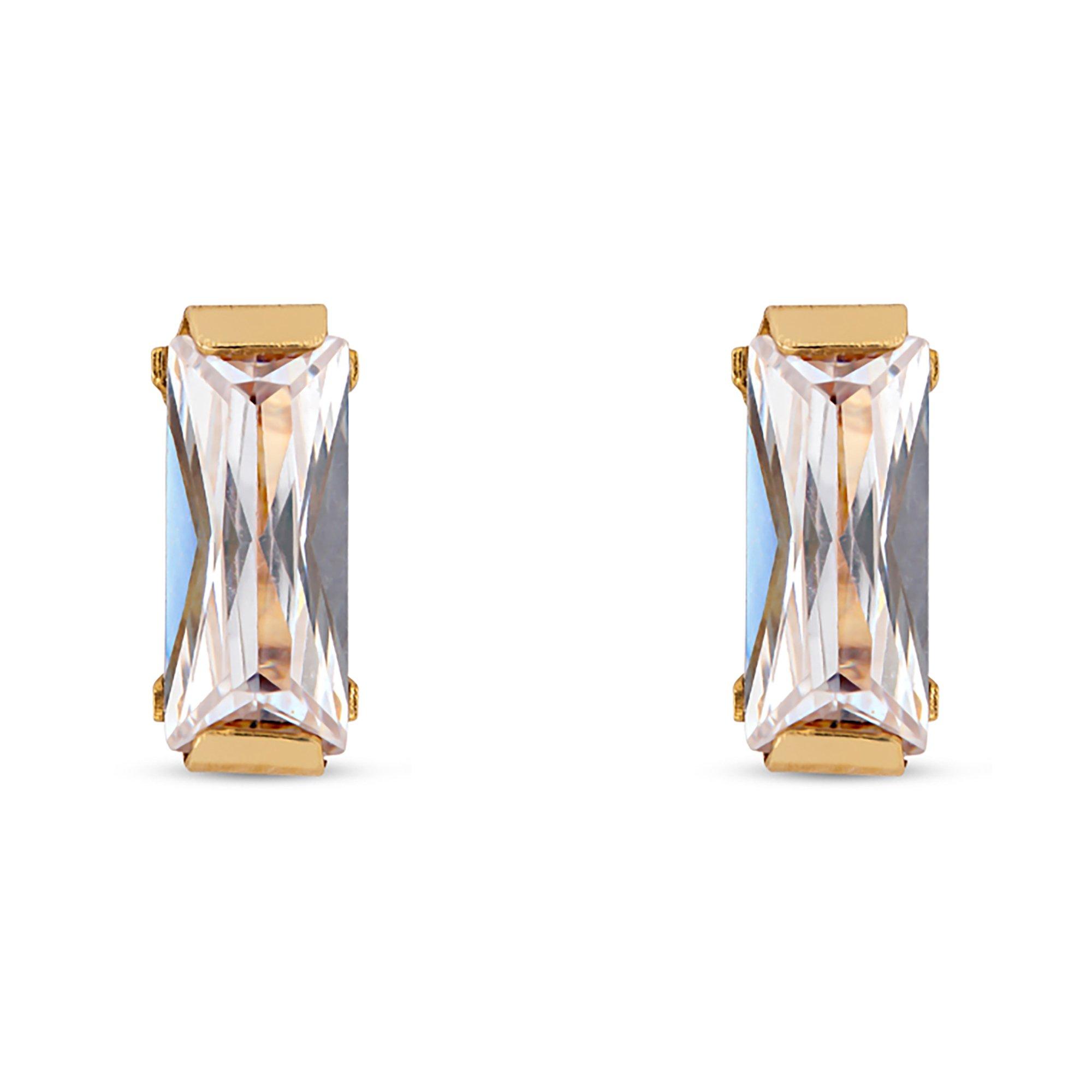 Design moderno realizzato in oro zecchino e zirconi firmato Studio Marquise, che si incarna perfettamente in questi giocosi orecchini dalla struttura forte e dal carattere chiaro.