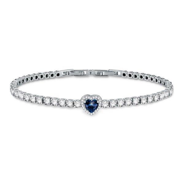Un bracciale in argento firmato Morellato con un cuore e un cristallo blu incorporato. Il modello si distingue per i raffinati cristalli applicati su tutto il bracciale.