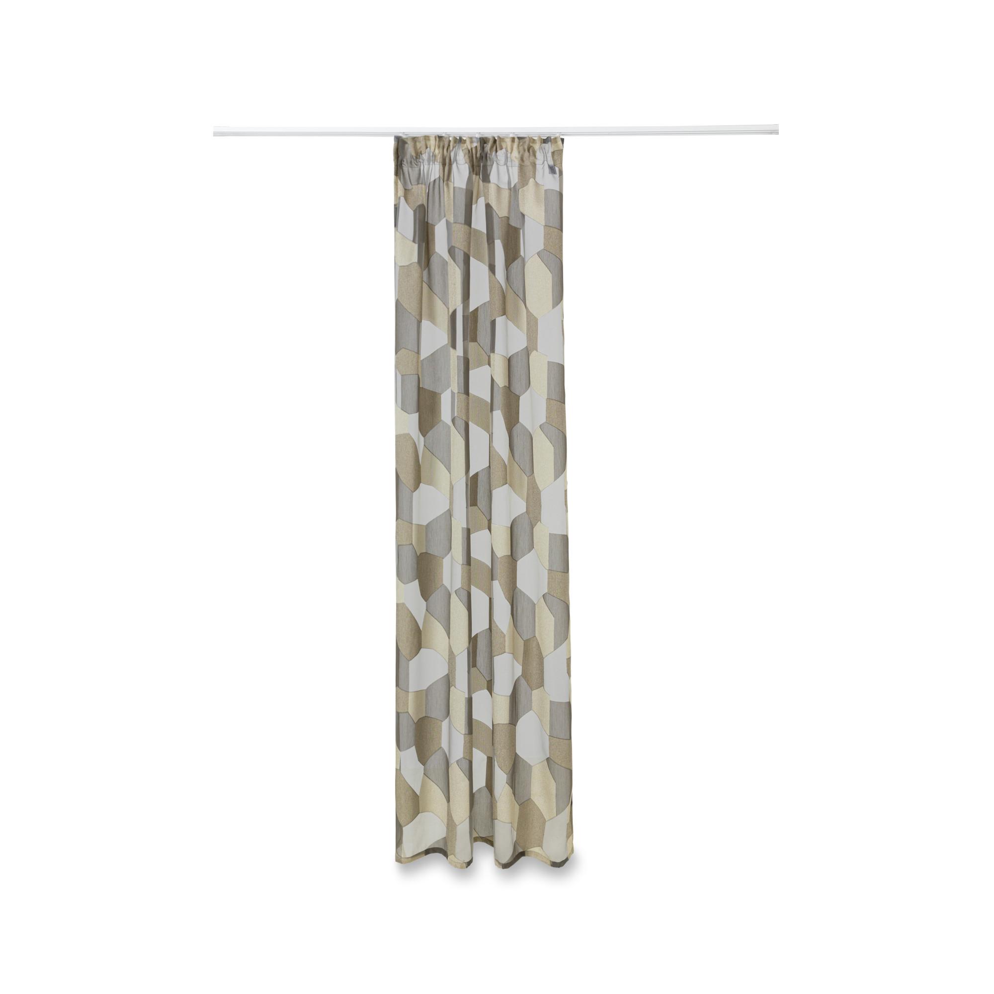 Tenda moderna con passanti nascosti e nastro plissettato in 100% poliestere. La tenda può essere montata su bastoni per tende fino a 30 mm.