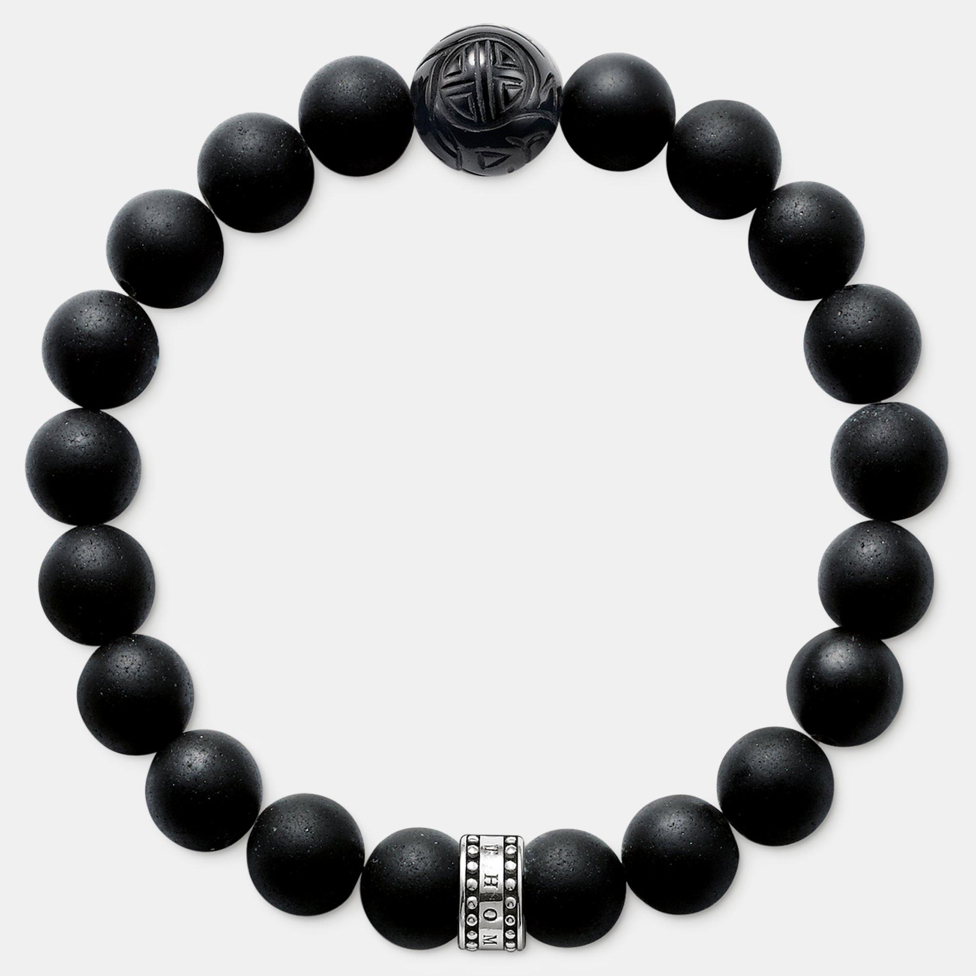 L'incisione orientale nella sfera di ossidiana nera lucida crea un interessante contrasto con le sfere opache e dona al braccialetto Rebel at heart un carattere mistico.