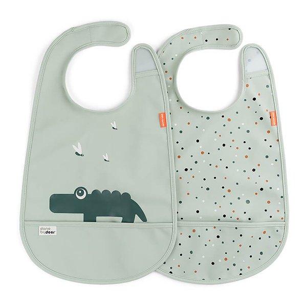 Questa confezione doppia firmata Done By Deer contiene due pratici bavaglini, uno dei quali ha una fantasia a pois e l'altro incanta con un delizioso motivo stampato. I bavaglini sono realizzati in materiale facile da pulire e si aprono e si chiudono molto semplicemente con una chiusura in velcro.