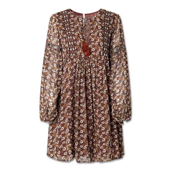 Questo vestito firmato Pepe Jeans sfoggia una fantasia speciale. Ha uno scollo rotondo da annodare ed è dotato di pieghe. Il taglio Regular Fit garantisce una vestibilità ottimale.