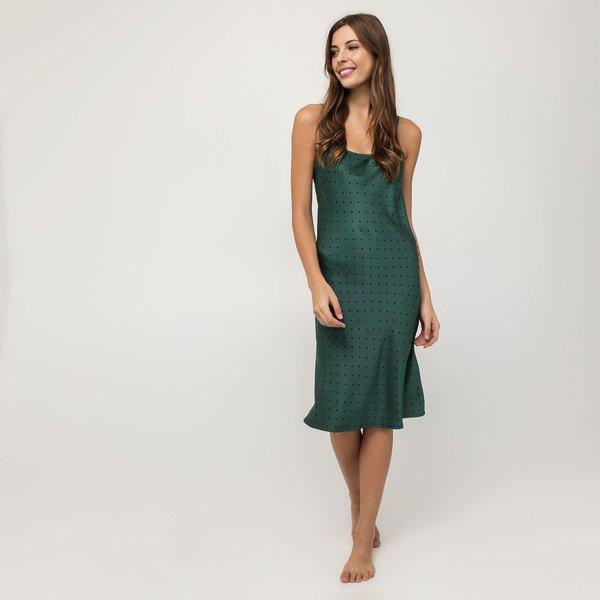 Questo abito firmato Underprotection realizzato in meraviglioso raso lucido di lyocell è meraviglioso come loungewear o come abito elegante per le occasioni festive. Ha un motivo a pois decorativo ed è dotato di spalline sottili e regolabili. Inoltre, ha una vestibilità ampia in lunghezza midi.