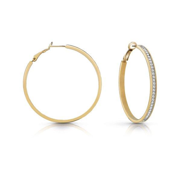 Gli orecchini pendenti di tendenza firmati Guess realizzati in acciaio inossidabile placcato in oro della collezione Color my Day offrono una finitura speciale per ogni mise. Con il loro attraente design circolare e i cristalli scintillanti, sono un accessorio elegante. La pratica chiusura a gancio assicura una presa sicura, ideale per feste ed eventi.
