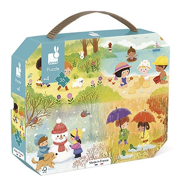 Primavera, estate, autunno e inverno! Scopri le 4 stagioni con questo bellissimo puzzle in cartone da 36 pezzi con tanti dettagli. Un bellissimo puzzle in cartone da 36 pezzi per sviluppare la memoria e le capacità motorie. Facile da trasportare in una graziosa valigetta con manico in tessuto. Include un modello di poster che funge da modello per i principianti dei puzzle. Gli utenti esperti possono quindi padroneggiare il puzzle senza aiuto. Prodotto in Francia, prodotto FSC TM e a base di inchiostro vegetale. Puzzle per bambini dai 4 anni.