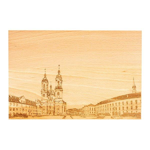 Questo semplice tagliere in legno di faggio proviene da foreste sostenibili. La tavola di legno è stata incisa con amore in Svizzera con le macchine interne di Kadastar.