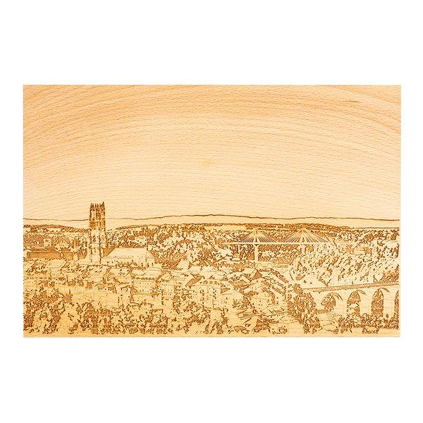 Questo semplice tagliere in legno di faggio proviene da foreste sostenibili. La tavola di legno è stata incisa con amore in Svizzera con le macchine interne di Kadastar.