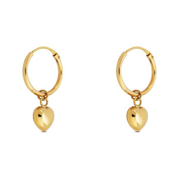 Questi graziosi orecchini a cerchio firmati Caramel sono realizzati in oro giallo 18 carati e adornano le orecchie con un grazioso ciondolo a cuore. Gli orecchini sono conservati in una preziosa confezione regalo con un orsacchiotto e hanno una raffinata chiusura a cerchio.