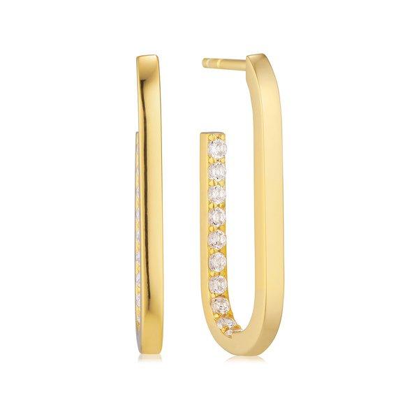 Orecchini in argento sterling 925 placcato oro a 18 carati, superficie lucida, incastonati a mano con zirconi bianchi e taglio sfaccettato.