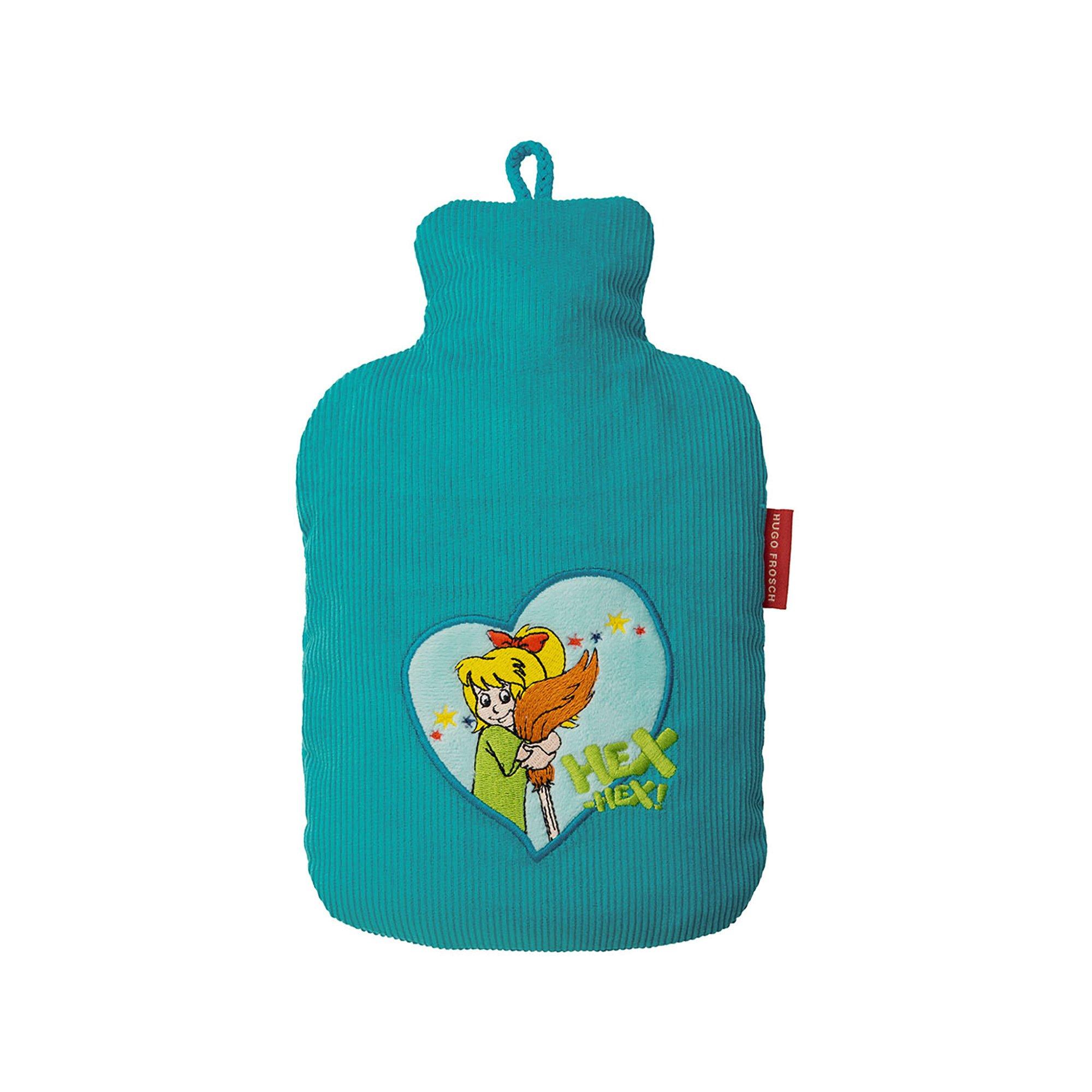 Divertimento e sogni d'oro con "Hex-hex! La piccola borsa dell'acqua calda ecologica con coperchio in vellutato velluto a coste e il motivo Bibi Blocksberg amorevolmente ricamato invita i più piccoli a coccolarsi.