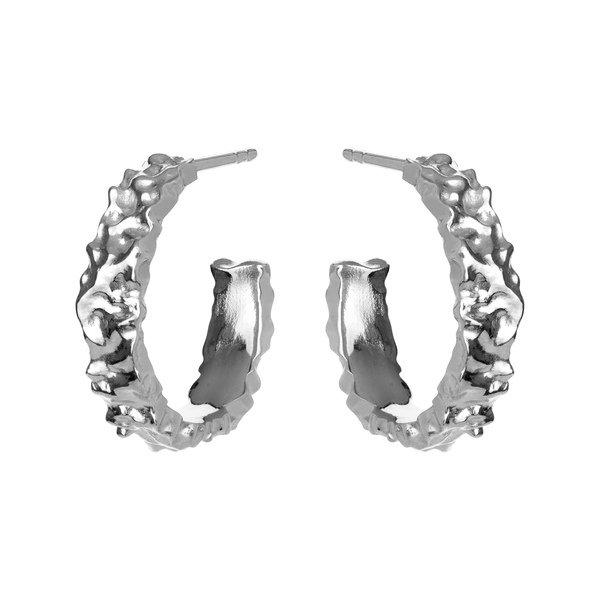 Meravigliosi orecchini a cerchio dalla texture fusa che donano al look quotidiano una nota organica.