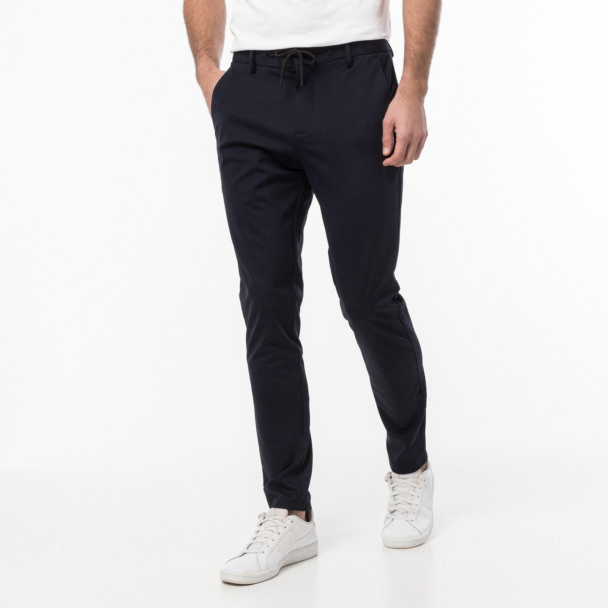 Questi pantaloni da abito offrono una silhouette moderna ed elegante con il loro design body fit. I pantaloni presentano una vita elasticizzata con coulisse per una vestibilità regolabile e confortevole, combinando la sartoria classica con elementi casual contemporanei. Sono un'aggiunta versatile a qualsiasi guardaroba, adatti a diverse occasioni.