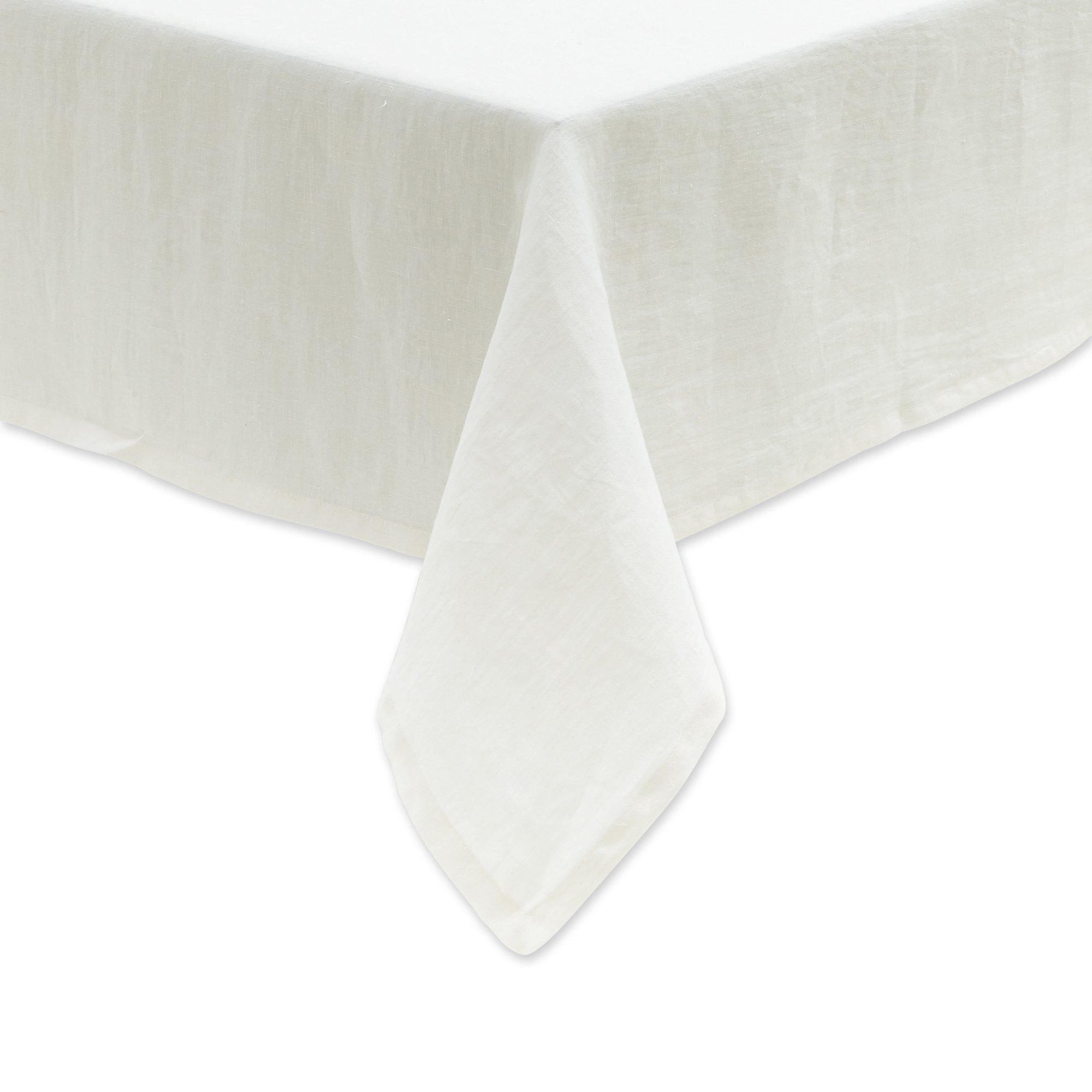 Una tovaglia semplice e in tinta unita firmata Manor realizzata al 100% in lino, che riveste il tavolo in tessuto di alta qualità.