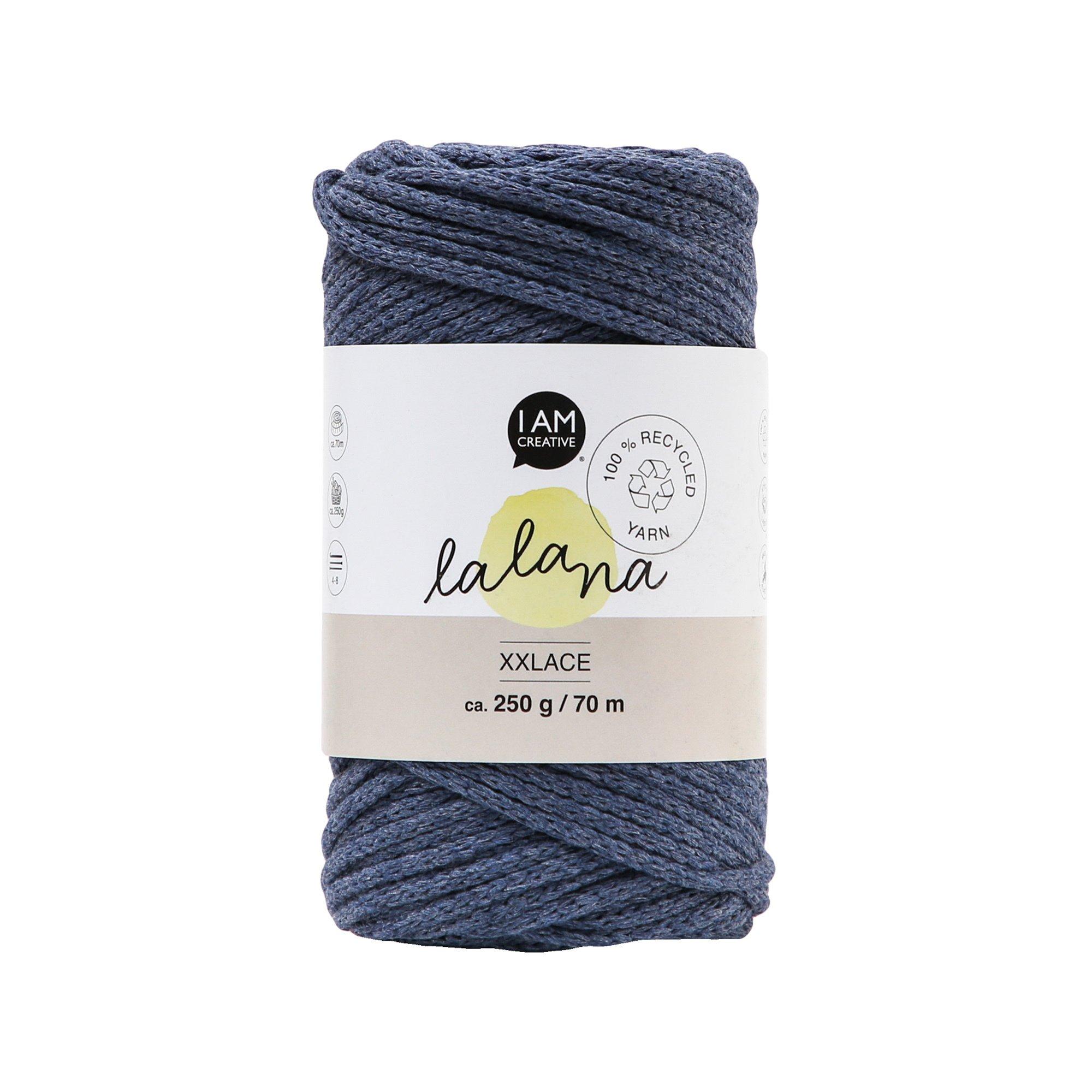 Lalana XXlace è, come suggerisce il nome, un filato a catena più spesso con cui si può fare di tutto. Uncinetto, maglia, nodo nei colori più belli. È un filato morbido e riciclabile e permette di realizzare borse alla moda, necessaire, cesti, cuscini ecc. per l'uncinetto, la maglia, l'annodatura (senza pettinare). Rete, borse o necessaire di moda o da bagno, ma anche maglie ariose e sottili decorazioni in macramè senza frange.